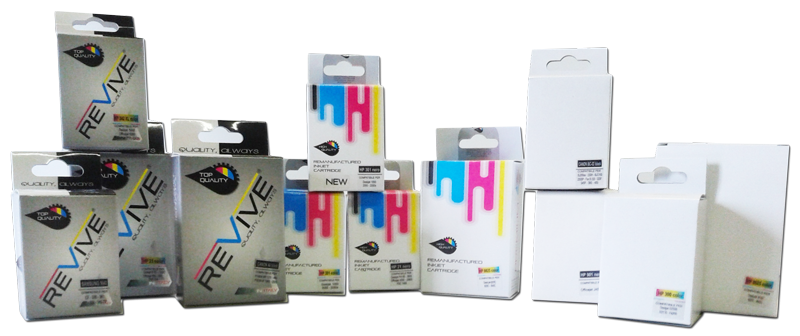 La linea Packaging comprende tre scatole per quanto riguarda le cartucce inkjet rigenerate
